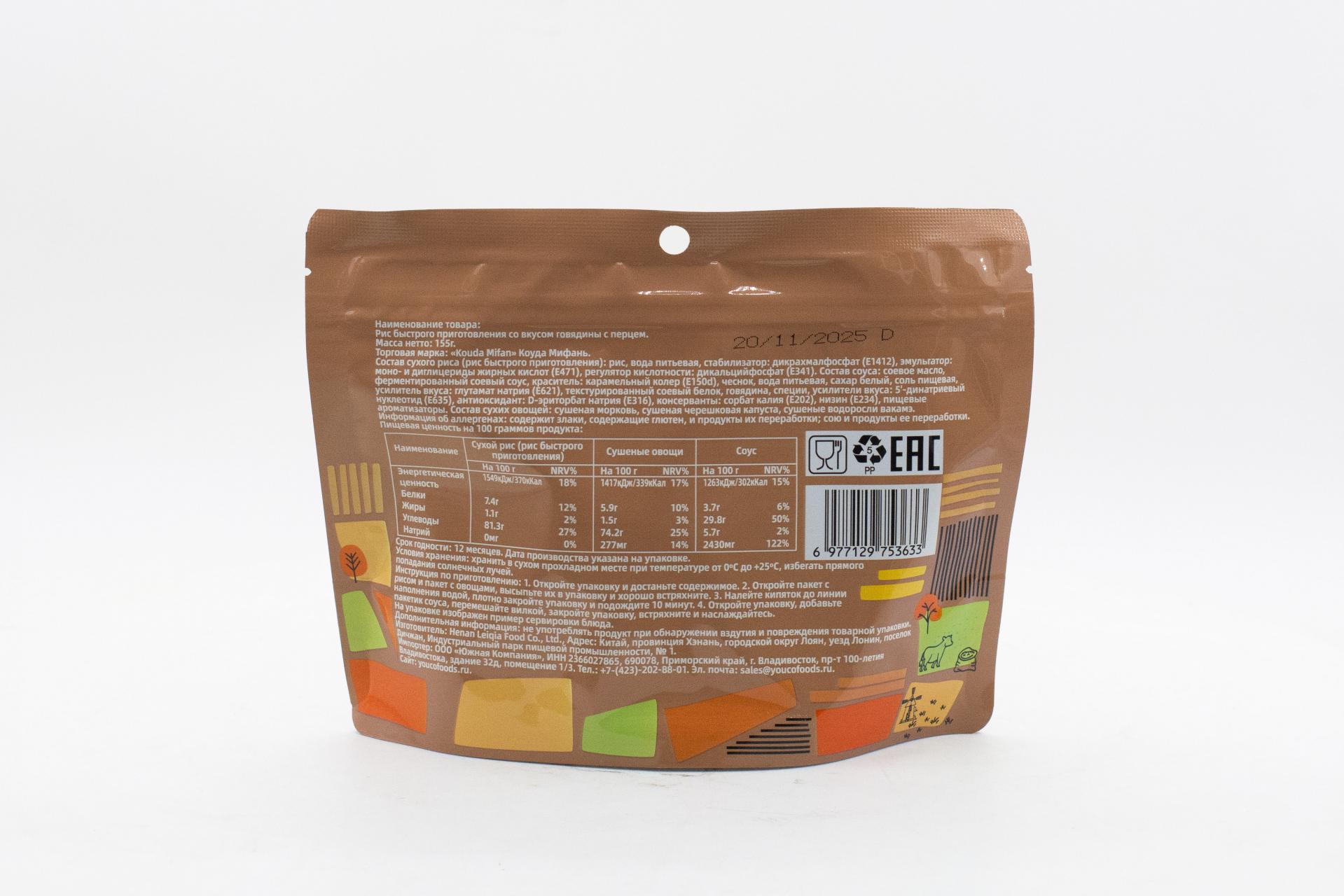 Рис быстрого приготовления Kouda Mifan со вкусом тушеной свинины в тайваньском стиле (Китай) 155г0,00 руб. за штуку (в упак. 50 шт.) |